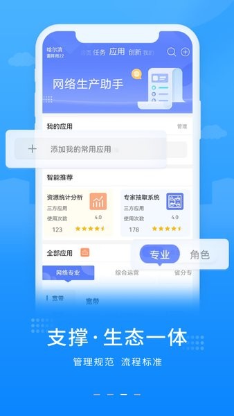 联通网络app作为网络线全体员工的移动工作台,以集团创新战略和数字化转型为指引,以一线生产场景为主线,聚焦强化网络支撑水平、赋能网络竞争能力,通过工单集约、流程闭环、应用协同、数据融合,助力规建维优营服数字化全场景闭环管理,从而提升一线人员的生产效率。