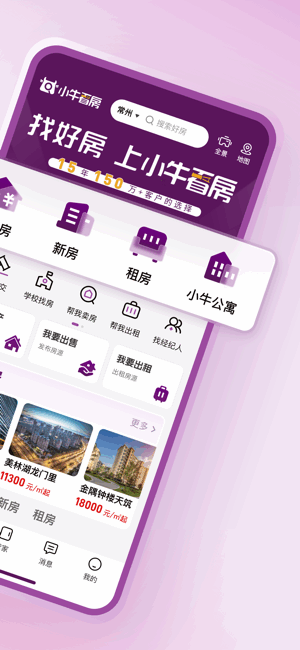 小牛看房由常居地产、常州优居、房佳乐、华纳地产、乐享家、可家提供二手房买卖、新房、租房、房价、楼盘等房产信息。提供房产估价、房贷计算器、查房价等工具。