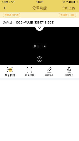 2、派件,收件,查件都是可以高效进行,更有快递员巴枪扫描及收快递费功能。