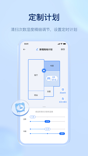 定制计划清扫次数湿度洁细阔节,设置定时计划