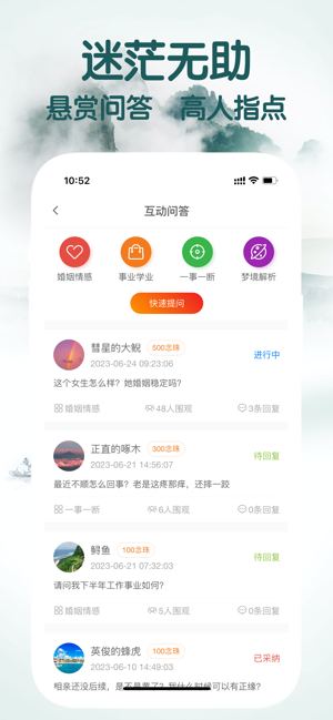 最近发现一个挺不错的心理咨询和算命软件——高人道。这个平台功能很强大,不仅有婚恋情感、事业财富这些常见问题的解答,还有心理咨询、梦境解析这些听起来挺专业的服务。最让我觉得靠谱的是他们有一对一真人老师实时沟通的服务模式,10分钟内就能快速响应,而且不满意还可以随时换老师,这点真的很贴心。