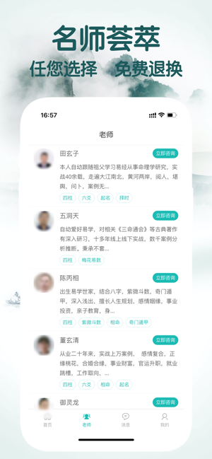 众多真人大师任您选择,大师在线实时为您服务,5天超长服务时间。如对测算不满意,无条件为您更换大师。