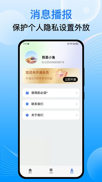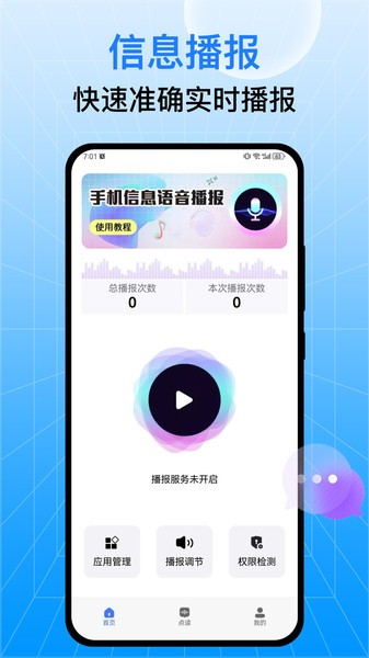 -- 信息读报:开启信息读报以后,APP会自动的为你播报信息内容;