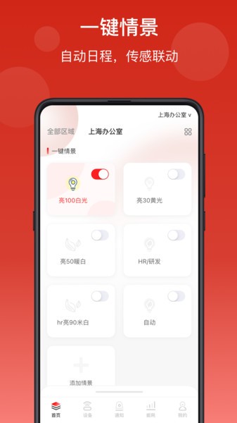3、预设好的多个情景能够随意的切换,用户可以随时在此添加新的智能情景;