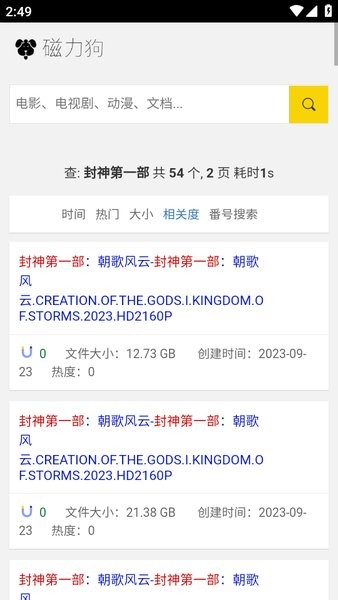 磁力狗搜索神器,可以搜索到各种磁力资源,不论是电影、电视剧还是动漫,都可以进行一键搜索!输入名称,点击搜索即可,就是这么简单。