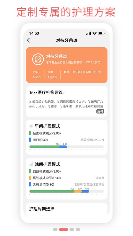 3、享受更科学、更舒适化的口腔个性护理方案。Oclean Care健康数据平台,为你提供专业的口腔护理健康指引。