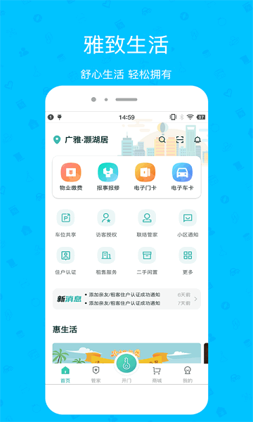“雅管家”是国内领先的社区移动互联网服务平台,雅居乐控股旗下雅生活集团创新推出,面向全体业主和住户提供全新物业管理4.0服务,致力于打造业主当家作主的和谐共创社区。同时提供基于社区场景深度定制的创新电商、邻里社交、普惠金融、健康养老等业主专属服务,助力物业服务再升级!