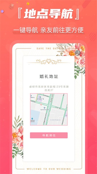 一键导航:不用花时间解释婚礼地址,电子地图一键导航路线。