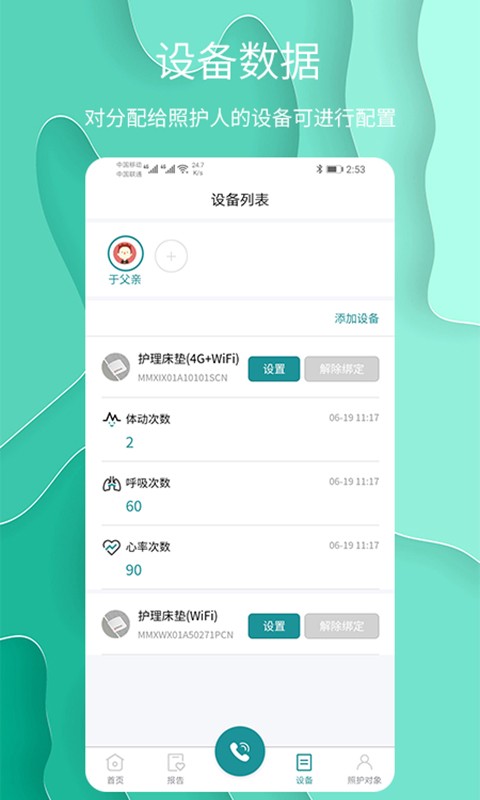 护理云安卓版这是一个可以实时获取设备数据、监控身体健康的助手。获取最新报告数据,看看身体状态如何,异常情况及时知。连接方法也十分简单,不管是自己使用还是用在老人上都是不错的选择。