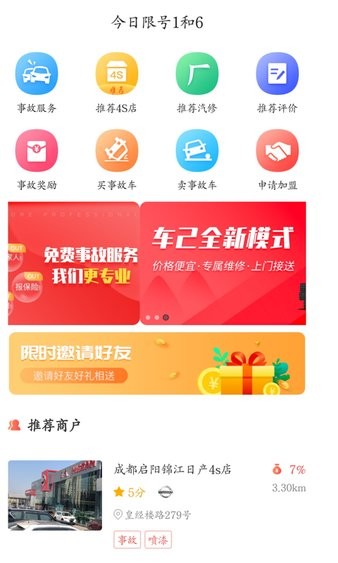 对用户和维修员定位,进行近距离事故订单的推送。打造快速发现、解决事故的一站式汽车事故信息服务平台。车己平台成立于2018年8月,是国内互联网理赔救援一站式服务平台模式,成立之初就与广汇汽车四川集团、成都锦泰集团、三和集团、建国集团等知名汽车经销商建立了战略合作关系,并于2018年先后在重庆、武汉等市场建设、发展,并取得了不错的成绩和口碑。 目标是让客户在发生交通事故后能够得到及时救援和专业贴心的一站式服务。