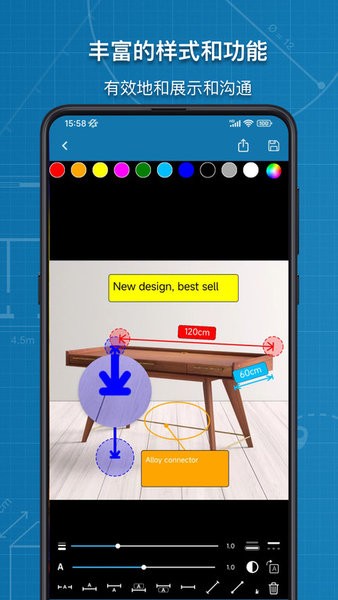 最棒的是它支持各种场景使用,比如设计、健身、购物等等。你可以随意更换标记颜色,保存或分享标注后的图片也很方便。我觉得它不仅适合工作,平时生活也能用到,比如买衣服想看尺寸,或者规划旅行路线,都能派上用场。总之,这个APP真的很实用,值得推荐!