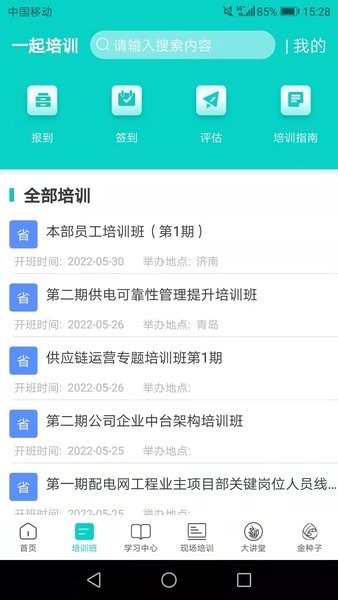 山东电力职工一起培训系统,培训班:员工在线进行报名、报到、签到、评估。