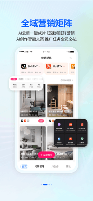 一键发布各大短视频平台,集中管理视频浏览、点赞情况、获取私信及评论并回复。将视频下发全员发布并获取推广报告,实现全域矩阵营销。