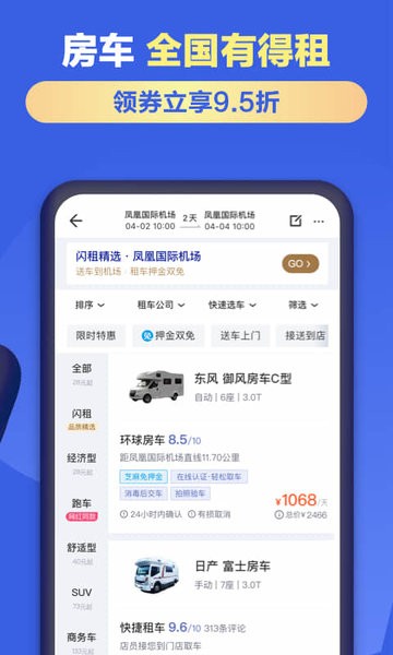 重新定义国内租车,尊享8大特权,品质服务,优质体验。闪租特权包括:新车、洗车后交付、满油取车、无限里程、免费取消、100%有车、芝麻双免押、送车上门,更多租车特权也在抓紧上线中。