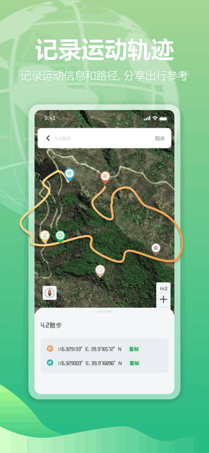 您可以在四维地球探索版中记录运动轨迹,保存路线信息,为日后出行及更多户外爱好者提供参考。
