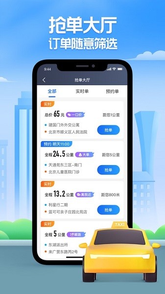 订单来源稳定,司机可自主选择,有效减少空驶、提高收入,聚的出租司机版赚钱更放心;