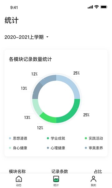 3.可以查看自己的成长档案,可以查看自己的学业数据和健康数据,可以查看自己的相册。