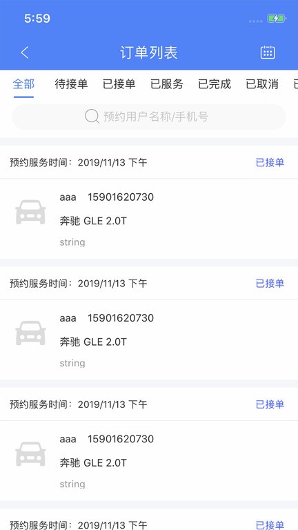 了解全部订单的信息,包括待接单、已接单、已服务、已完成、已取消的订单信息;