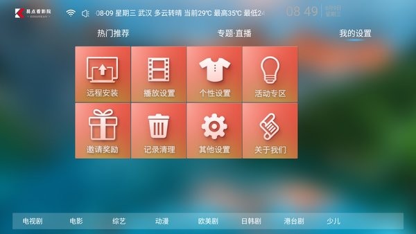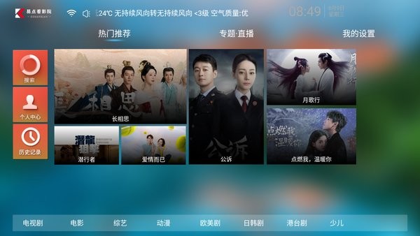 易点看TV电视盒子最新版作为电视大屏影视观看的视频播放平台,同步各大电视视频网站,电视剧、电影、综艺等随你浏览,精选推荐,还有专题直播资源,自由选择观看,一键注册登录即可,支持在线搜索,轻松设置,多条线路播放源灵活切换,高清流畅播放,实时记录历史,方便简单!