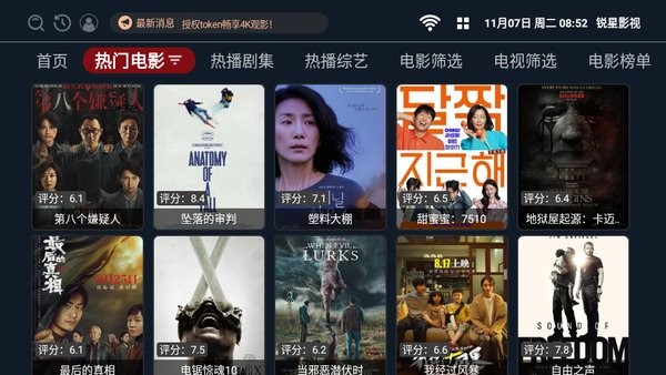 锐星影视全屏会员TV电视版是一款内置高清4K片源的免费电视软件,不用VIP就能看4K视频,而且完全无广告。它的界面和操作方式跟TV盒子挺像的,功能也很强大。官网介绍它覆盖了全网的视频内容,各种题材都有,搜索起来很方便,播放也超流畅,不用担心卡顿。