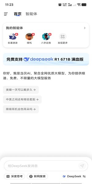 当贝ai平台app手机版是由当贝市场推出的人工智能ai软件,已经接入了deepseek、通义千问、豆包、智谱清言、kimi等大模型;用户可以在这里进行提问,可以一键生成活动方案、ppt、小红书文案、方案策划等,它可以帮你解决很多事情。