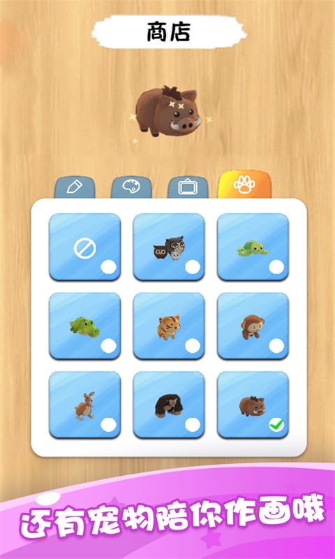1、游戏有着非常卡通童趣的画面,玩家可以在这里选择不同的主题绘画内容,人物、植物或是动物,任你自由选择