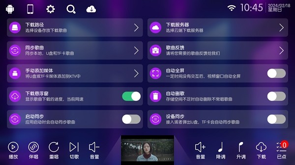 ktv点歌机系统是针对智能电视平台打造的ktv点歌唱歌软件,内置丰富全面的音乐歌曲资源,类型多种多样,自由选择搜索,在线点歌,一键调节音量和声调,个性化设置管理,支持半唱、重唱、切歌,在线下载,随时随地,想唱就唱,十分方便!
