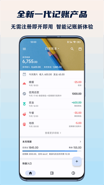 3、随时随地记账,消费一次记一次;