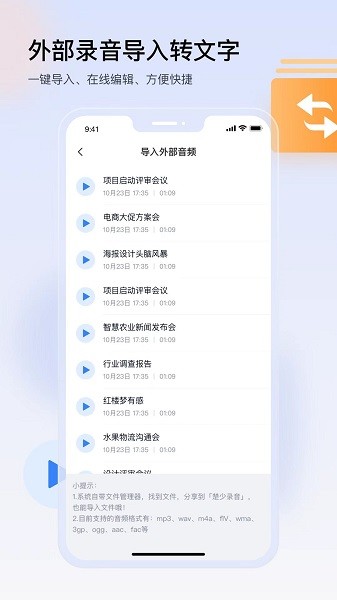 楚少录音是由上海楚少信息科技有限公司开发的一款以实时录音转换为文字、外部音频转换为文字、文字转语音为核心功能的办公、学习软件,适用于职场开会、课堂会议记录等场景下进行音频录制、音频转化等需求。同时楚少录音还支持手机录音、文字转语音、语音转文字(智能配音)、音频裁剪、视频转文字、音频合并、格式转换、音频降噪等功能。
