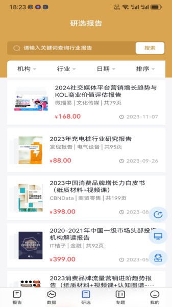 发现报告官方版是一款提供研报服务的应用软件,覆盖多个行业,推送热门文章和热点洞察,支持用户搜索关键字、股票、行业等信息,并生成详细报告,帮助用户进行数据分析和决策。这个应用收录了海量的报告和数据图表,内容涵盖宏观策略、行业分析、公司研究、财报、招股书等,而且与国内外知名机构合作,确保报告的真实性和专业性。