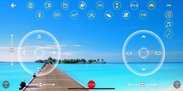 APP内置虚拟控制杆,用户可以通过触摸屏幕上的虚拟控制杆来操控无人机的飞行方向和速度。