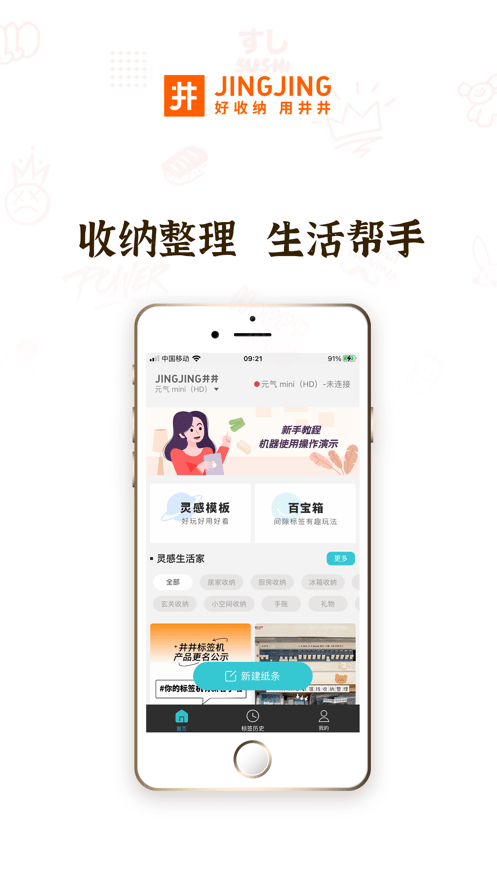 井井标记app最新版软件可以和萌趣、元气、经典系列的打印机来连接使用,它不仅可以进行标签打印,还能整理收纳各种物品,让你家里面的东西都变得井然有序,超多模板可用,灵感、花字模板随心选,轻松创建新纸条。