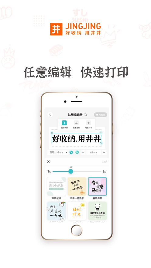 井井标记APP最新版可以连接萌趣、元气、经典系列的打印机,方便打印标签和整理物品,让家里变得井然有序。它有很多模板可选,还有各种字体、符号和边框,设计起来很有趣。用户可以用它管理食物、药品、化妆品,记录开封日期和过期时间,还能为宝宝的用品贴上专属标签。搭配智能打印机使用,可以轻松打印出好看的标签,让生活更有序。