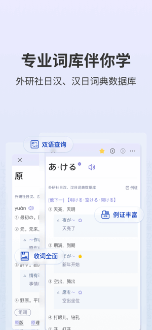 外研社大家的日语最新版是官方正版授权推出的日语学习app,帮助大家查单词、练口语、赏和歌、学文化。提供基础五十音图,零起点可以快速掌握,带来优质资源阅读,专业词库、地道口语学习,日汉、汉日词典数据库轻松查询搜索,例证丰富,收词全面,循序渐进,全面提升听说读写多方面的能力!