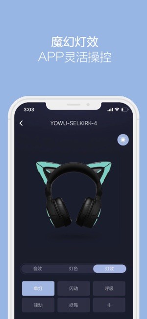 您可以通过连接YOWU耳机,控制耳机灯光、音效等。