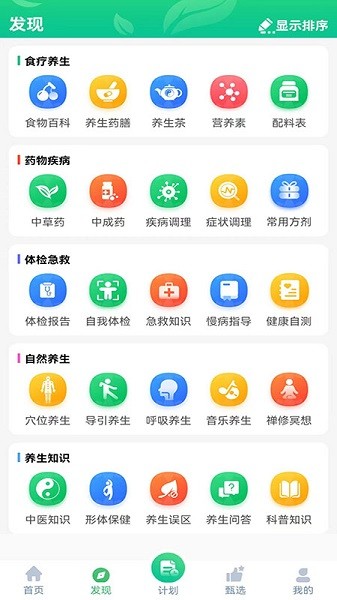 提供饮食计划,对自己的三餐实现营养素智能提示,及不适宜食用的食物提示。提供中医养生法,每日智能提供不同的导引方法,达到保健功效。