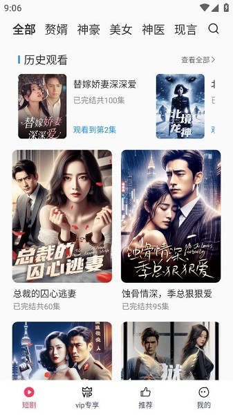 2、涵盖了悬疑、喜剧、爱情等多个题材,还有重生、逆袭、复仇、古风等多种类型的短剧,为用户提供丰富多彩的观影选择。