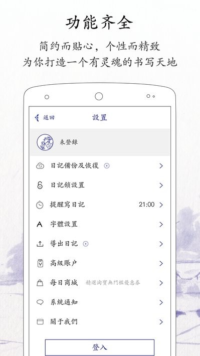 备份:日记可以云备份,换手机或者重新安装应用都不用担心数据丢失。
