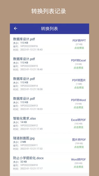 PDF格式转换器手机版是提供pdf转换的手机工具,支持多种格式互转,转换历史实时记录,随时查看,还可以一键预览,对转换文件进行下载,快速保存导出,操作简单又高效,省时又省力,轻松解决文件格式转换的问题,满足用户们的需求!