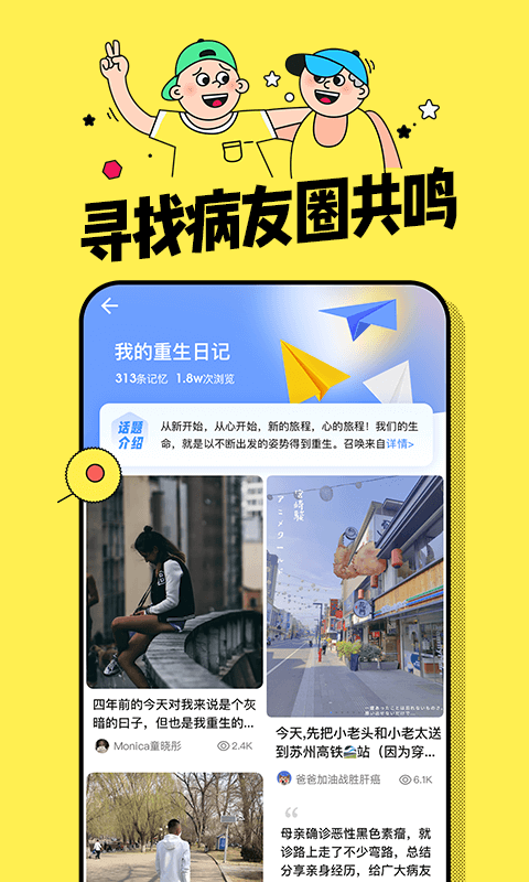 在这里,抗癌不再冷冰冰!这里有超过80万癌友,与你共同关注癌后生活美好样板,分享抗癌经验、癌后饮食、健康运动、保健调理甚至生活旅游的经历;在这里了解同类型癌友生活方式,分享抗癌成功经验,互相鼓励让自己的生活变得更美好一点。