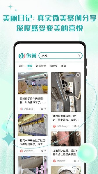 微美医美,专为医美整形打造的咨询服务软件,在这里用户可随时进行在线咨询,了解合适的医美方案,精选优秀的医美医师和优质的医美美妆产品,掌握行业精品信息,了解相关医美整形案例信息,有需要的用户可以下载使用!