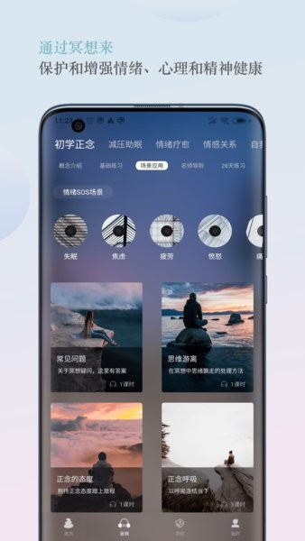 分类陈列,直观的看到改善情绪的分类歌曲和课程;