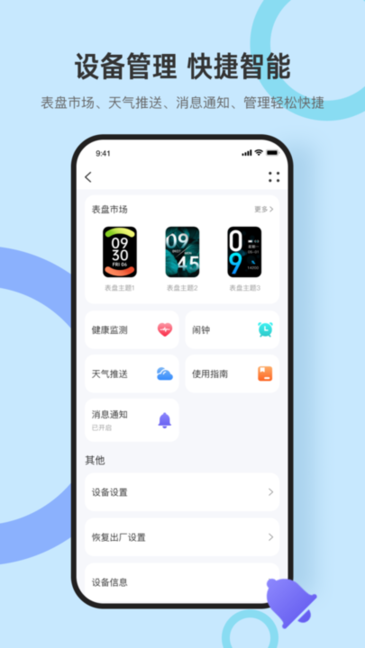 表盘市场、天气推送、消息通知、管理轻松快捷