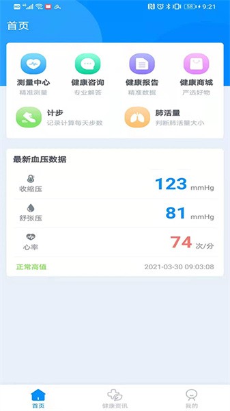 实现血压数据测量,永久记录,自动生成血压趋势图,可以按照月季年生成个人健康报告。定时监控。提供健康知识,文章,医生。