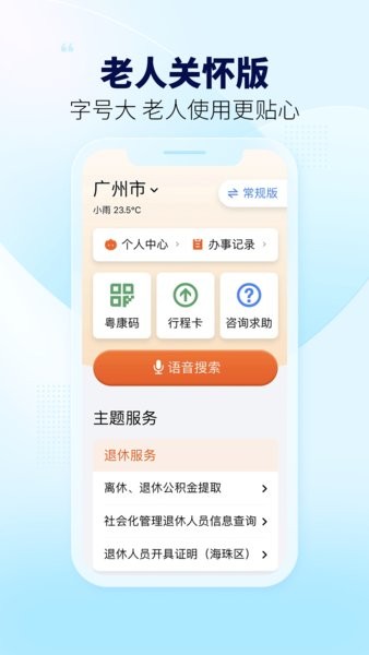 粤省事APP,全新上线“团体码”、“个人数字空间”、“关怀版”等亮点功能,新增在手机桌面快捷打开粤康码、粤省事码,亮码出行更轻松!