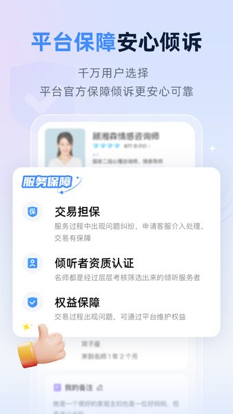 倾听者经过平台严格的审核认证,服务质量有保障。