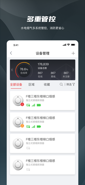 提供设备管理(含水、电、烟、气、视频等八大类系统),报警处置,故障分析,远程值守等轻便型的消防应用服务,提升消防管理的效率。