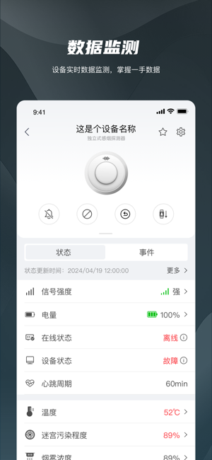 实时接收设备的报警信息,如烟雾报警、漏水报警等。