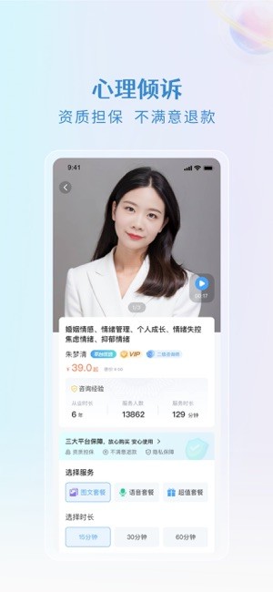 用户可以通过央心倾诉心理咨询APP在线预约专业心理导师,进行实时语音、视频或文字交流。咨询师具有丰富的心理辅导经验,能为用户提供个性化的心理建议,帮助用户解决心理难题,引导用户走出困境。