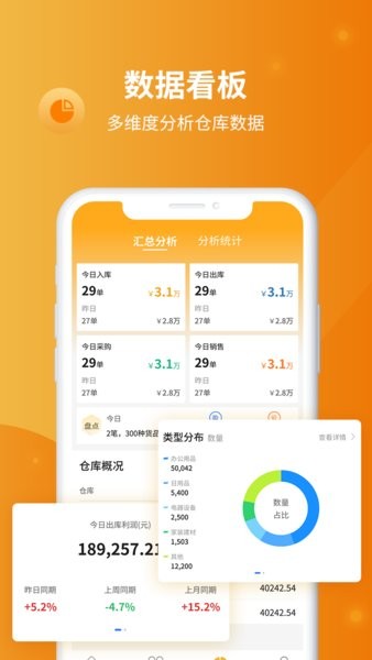 掌上分析出入库数据,做到库存数量,金额心中有数。